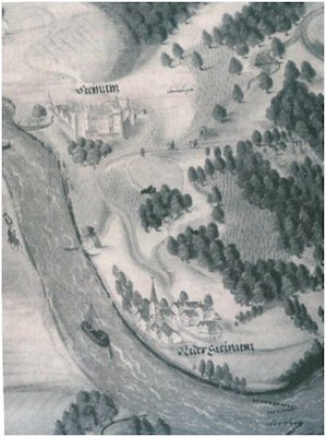 Aus den vorliegenden Zeichnungen aus dem Jahr 1597 ist erkennbar, dass am heute sichtbaren Standort kein Wald vorhanden war.